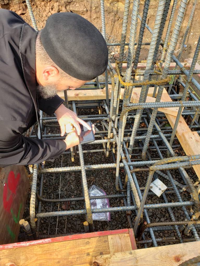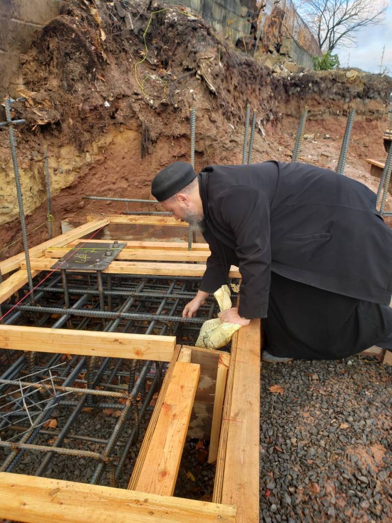 Great news! Today, contractors are pouring in concrete to create the foundation for the gymnasium! Fr. Thomas visited the site below to place a bible and icons of the saints beneath the corner columns of the building. Please keep praying for the project as it progresses.