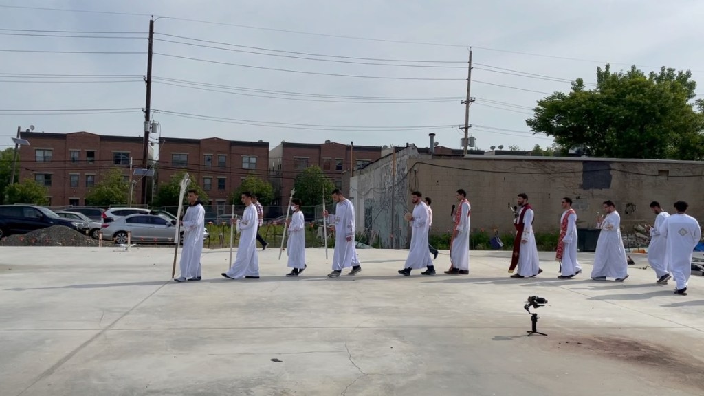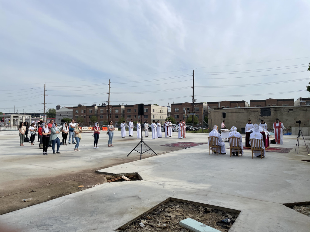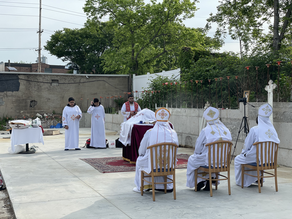 Christ is Risen! Truly He is Risen! Last Saturday, May 22nd, several of our beloved fathers, deacons and members of the congregation celebrated the divine liturgy on the new building construction site on Sip Avenue. We are excited to share some photos below and look forward to more opportunities to pray on the site of our future new home, God willing. We pray for the day that the new church building and facility operate as a haven for all of us.