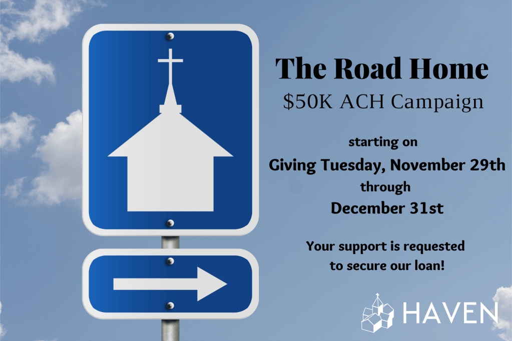 We are excited to announce The Road Home campaign, kicking off on Giving Tuesday, November 29th and running through December 31st! In order to secure the loan necessary to complete the construction on Sip Ave, we need to increase our automatic monthly contributions towards the project by $50,000 before the end of December. This is an urgent and time-sensitive request and requires that we come together as one body in support.