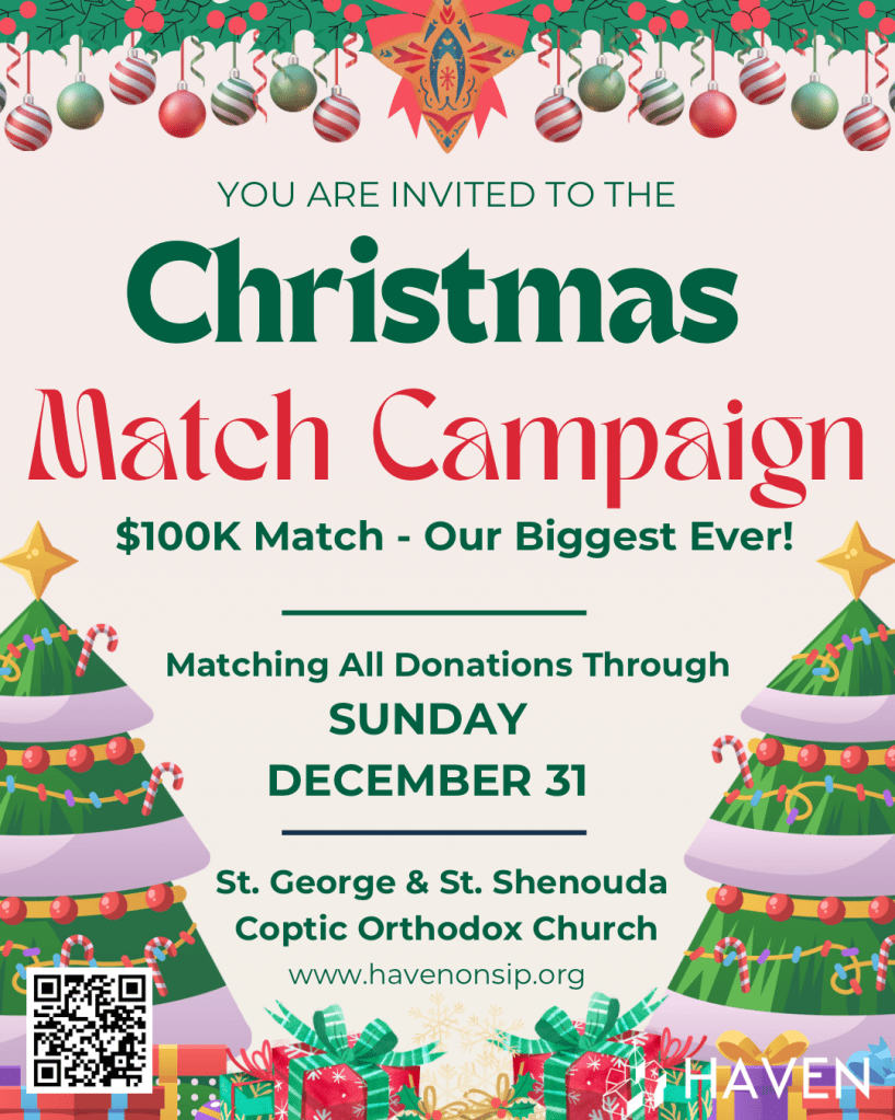 At the end of 2022, we shared a special message from Father David Bebawy and the youth of St. George & St. Shenouda to all of those who grew up at “Bergen.” You can see that message here on Instagram. This message kicked off last year’s HAVEN match campaign, which, through God’s grace and your generous support, was tremendously successful. Last year, we had our largest match ever of $75,000. We raised $308,663 and increased one-time monthly donations by $9,671. In short, last year’s campaign brought in ~$425,000 in one day. Thank God!